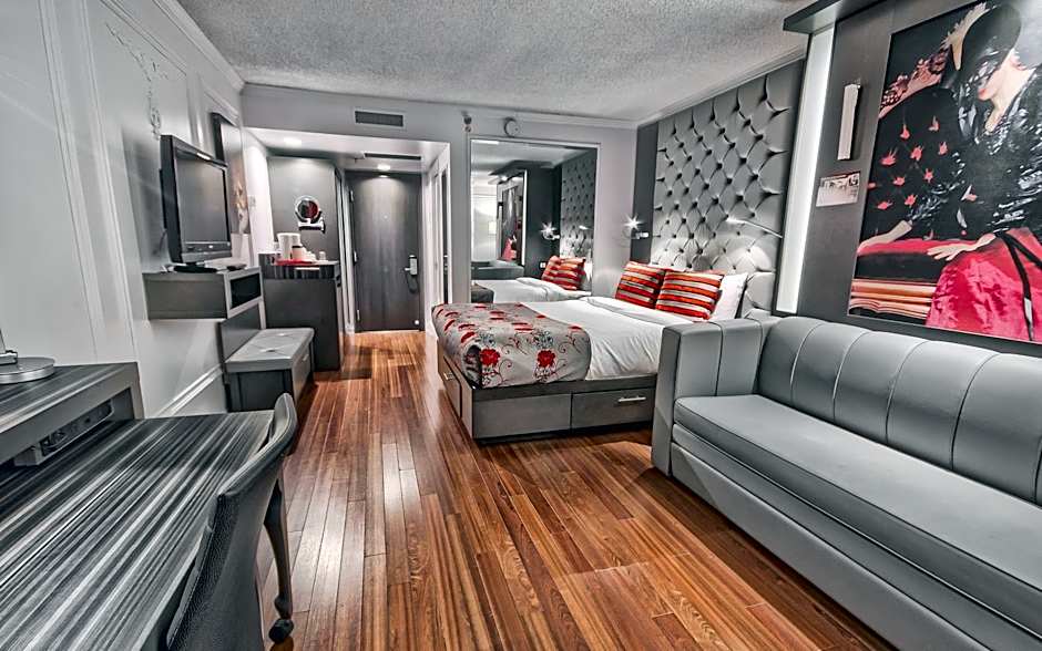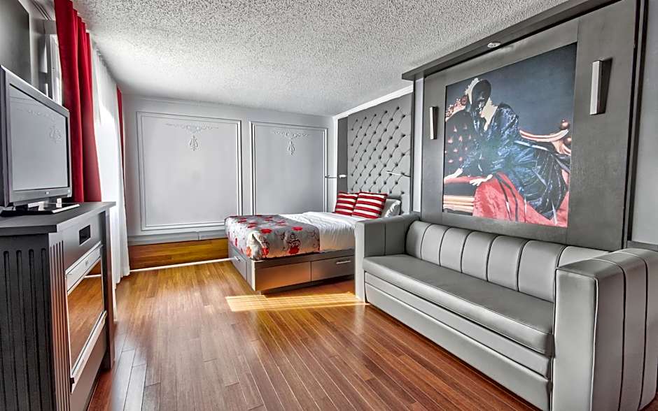 This suite has air conditioning, flat-screen TV and desk.